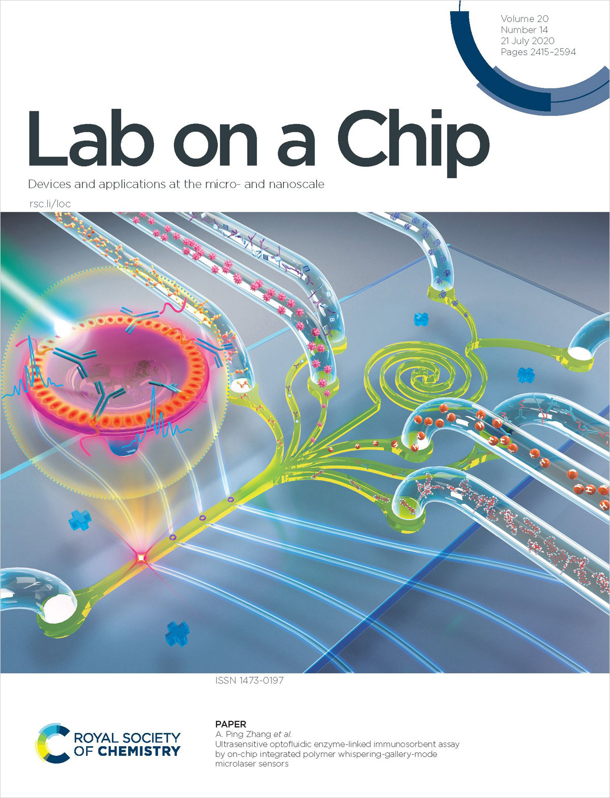 Оптические микрополосковые резонаторы, работающие на модах шепчущей галереи (ШГ), обладают значительным потенциалом для создания сверхчувствительных биосенсоров благодаря их уникальной способности обеспечивать резонансную рециркуляцию света, что позволяет добиться сильного светоматериального взаимодействия в микрообъёмах. Однако разработка экономичных и высокопроизводительных биосенсорных устройств на основе микрополосковых резонаторов ШГ для практического применения в диагностике заболеваний остаётся сложной задачей. В данной работе мы представляем оптофлюидный чип, интегрированный с напрямую напечатанными полимерными микролазерными сенсорами ШГ с высоким добротным фактором (Q), для проведения сверхчувствительного иммуноферментного анализа (ELISA).
