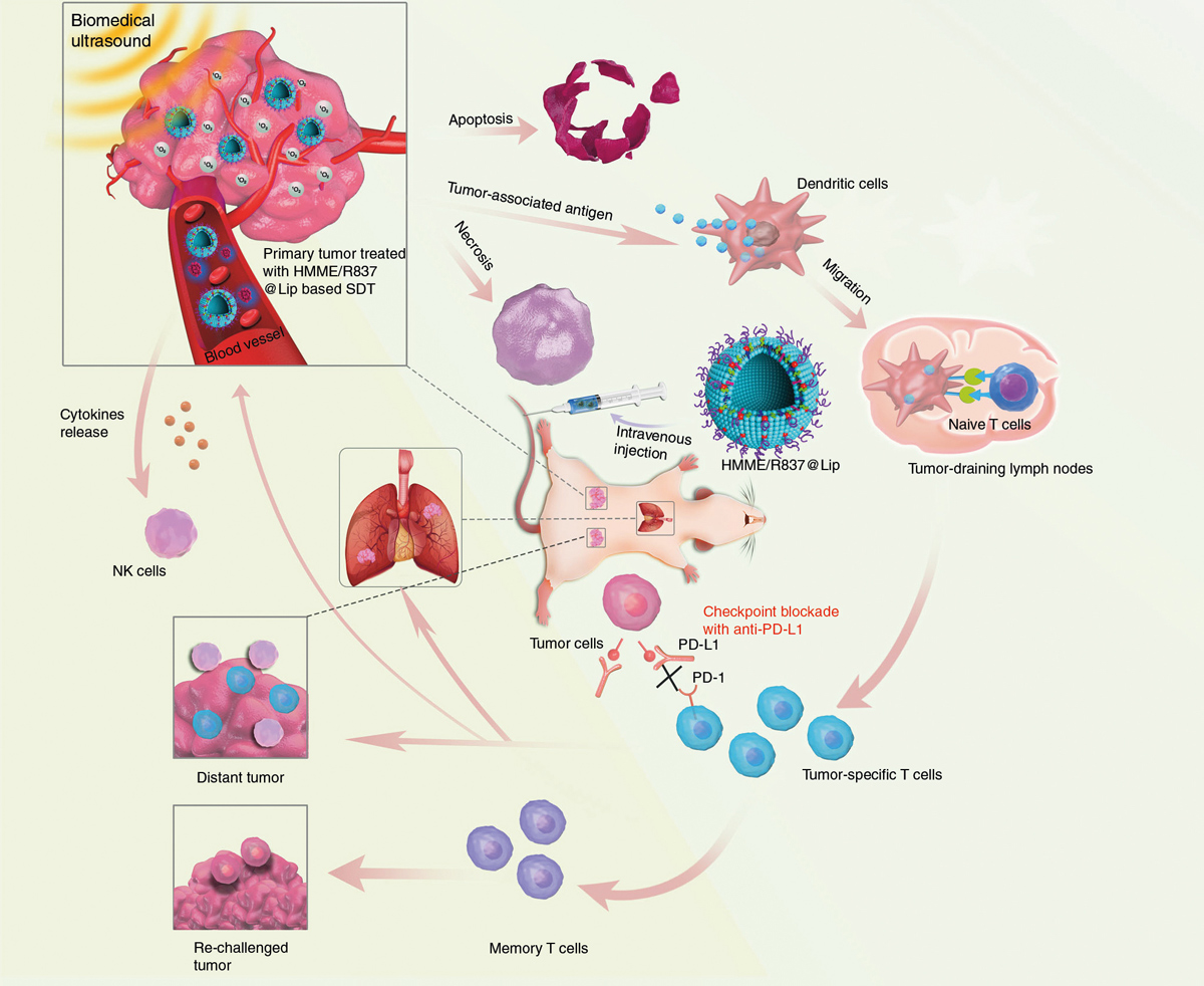 Комбинация блокады контрольных точек и наносонового сенсибилизатора, усиливающая неинвазивную сонодинамическую терапию, уменьшает рост опухоли и метастазирование у мышей